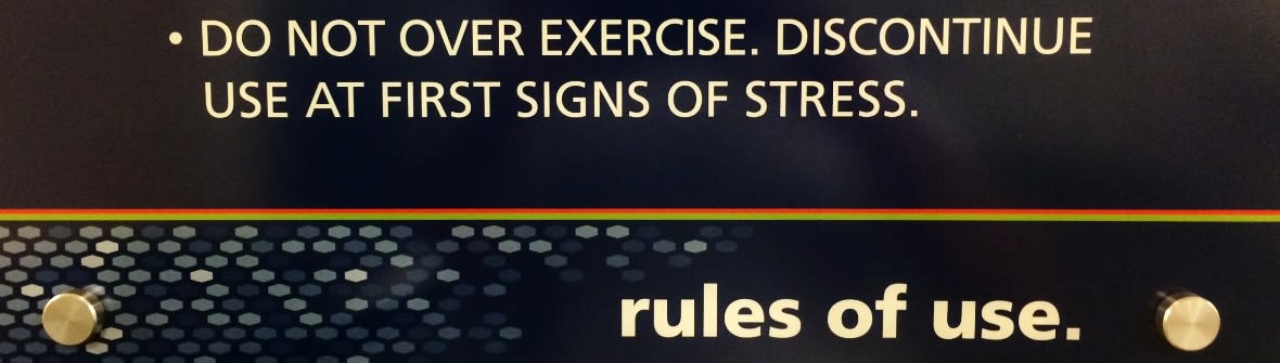 It read, “Do not over exercise. Discontinue use at the first signs of stress.”